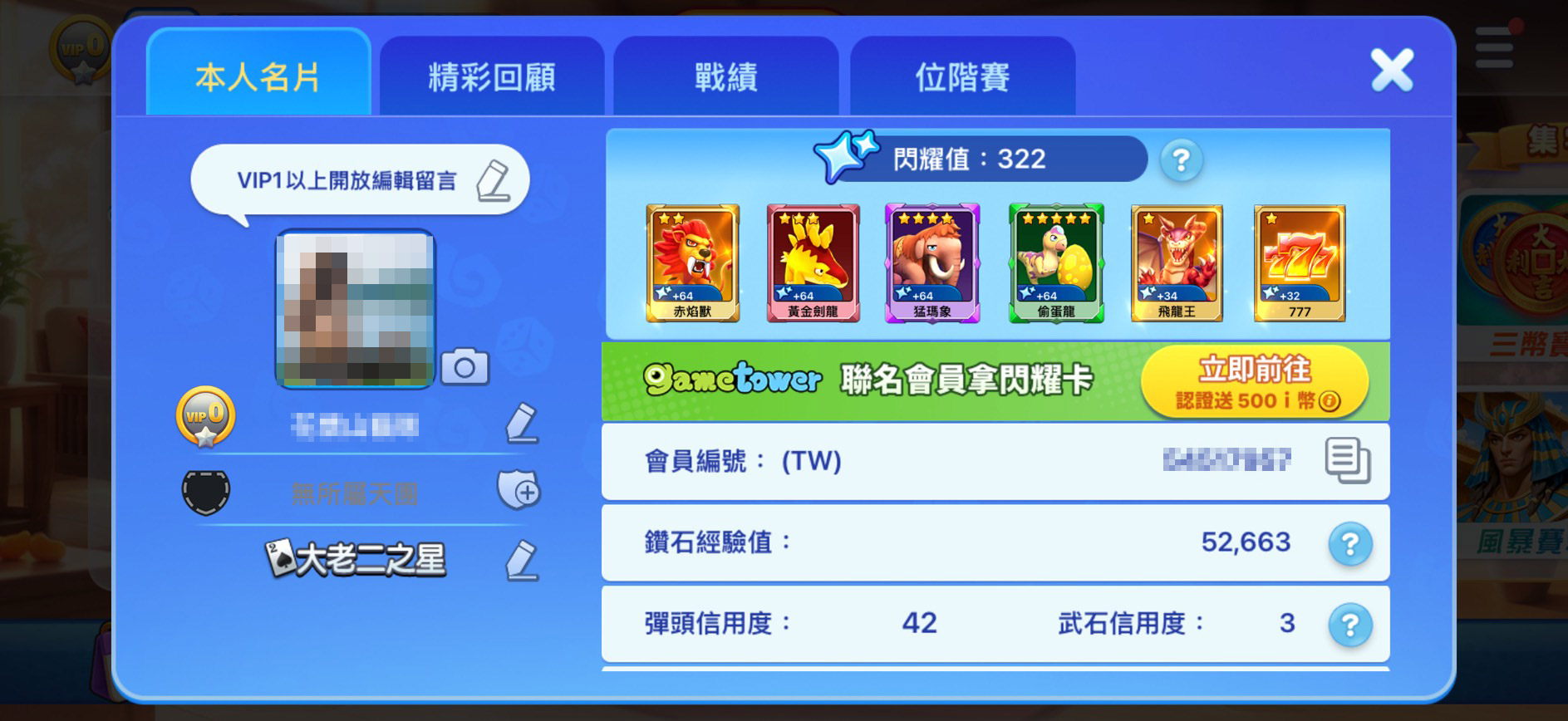 - 進入遊戲大廳,點擊左上角「頭像」,進入個人資訊介面進行手機門號認證。