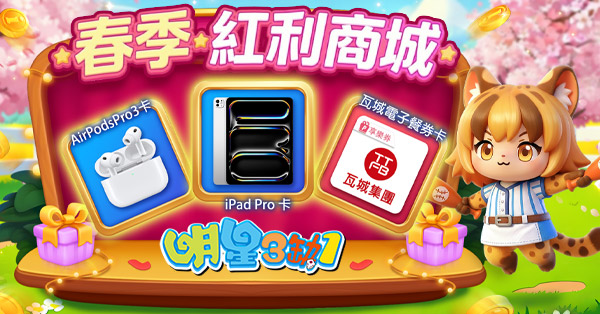 - 春季紅利點數可至春季紅利商城兌換商品,商品不定時更新,詳細獎項兌換以遊戲內品項為準。