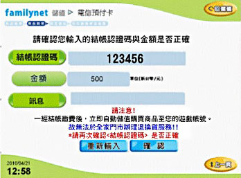請憑「結帳認證碼」至全省全家便利超商門市,操作 FamiPort 機台,列印繳費單,再至門市櫃台繳費,即可完成訂購流程,點數將自動存入遊戲帳號中。