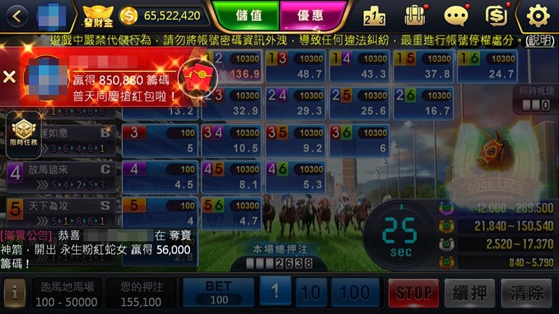 當有玩家達成指定贏分時,左上角彩帶會有搶紅包按鈕。