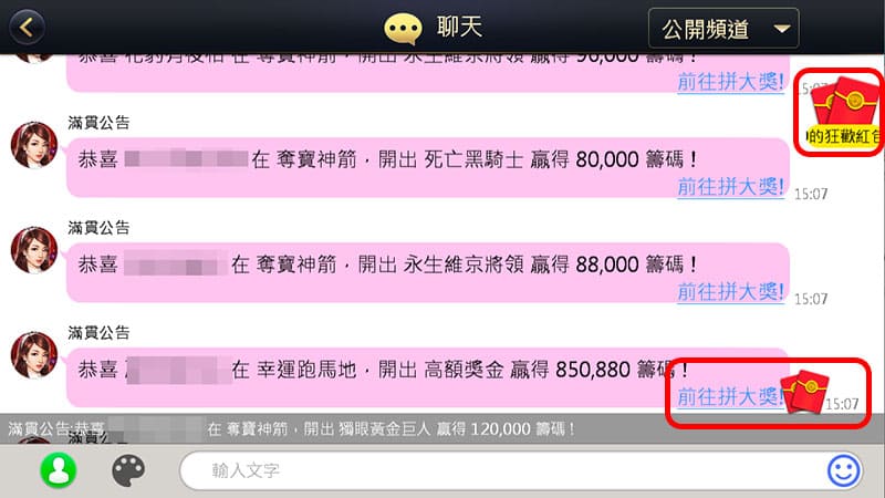 或是在聊天室內中獎訊息右側,或是聊天室右上角,也會有同樣的紅包按鈕。