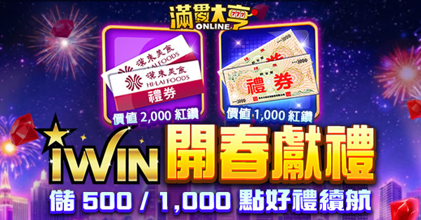 - 活動期間內,於指定通路儲值 iWIN 500 / 1,000 點,即可獲得加贈寶箱!
