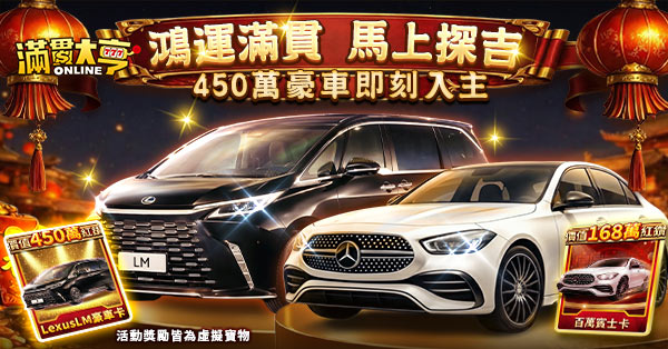 - 活動期間內,於遊戲中,蒐集【LM點數】,【馬上探吉】即刻入主450萬LexusLM豪車卡!