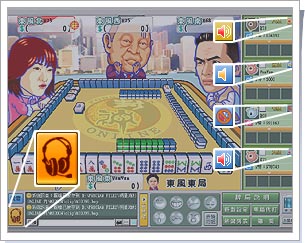 玩家進入『非自動配桌』的牌桌以後,透過 Lalay 軟體自動搭起同桌四人之間的語音聯繫。牌桌介面如圖: |